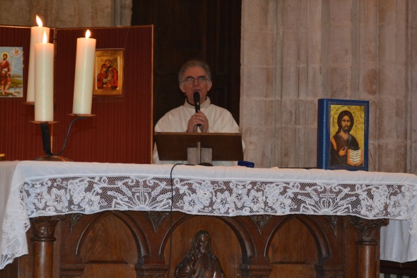 Avec une très belle introduction musicale à la veillée, merci aux musiciens venus se joindre à l’organiste et à l’animateur, nous chantons "La voici la nuit de Dieu."