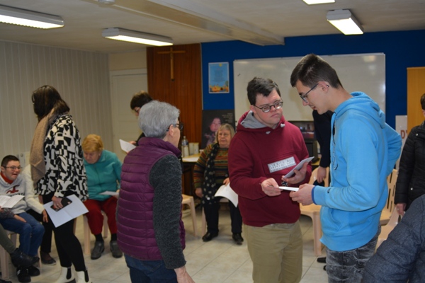 Ensuite, nous avons raconté la belle aventure de Foi et Lumière depuis 2009, faite de rencontres fécondes, de temps forts avec la communion de Corentin et Fabien puis d’Eric, la confirmation de Paul-Victor avec les jeunes de Benet. Tous ces fruits : « Tu as du prix à mes yeux.. » redonnaient confiance aux Jeunes comme aux Parents. Les pèlerinages à Sainte Anne d’Auray, à Lourdes avec Joie de Vivre fortifiaient notre foi enrichie par la ferveur, la simplicité, la beauté des participants.
