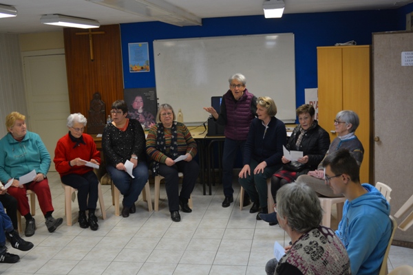 Ensuite, Maryse a présenté le déroulement d’une rencontre préparée avec l’aide du carnet de route du mouvement Foi et Lumière :