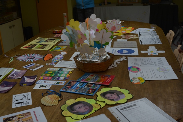 D’un côté les activités réalisées et de l’autre, fleurs, bougies, coin des douceurs.