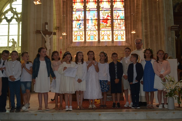 Clémence, Théoden, Paola, Margot, Anaé, Célia, Faustine, Lilian, Line, Marc, Maxime, Nino, Talia, Tim, Quentin et Louna ont communié pour la première fois.