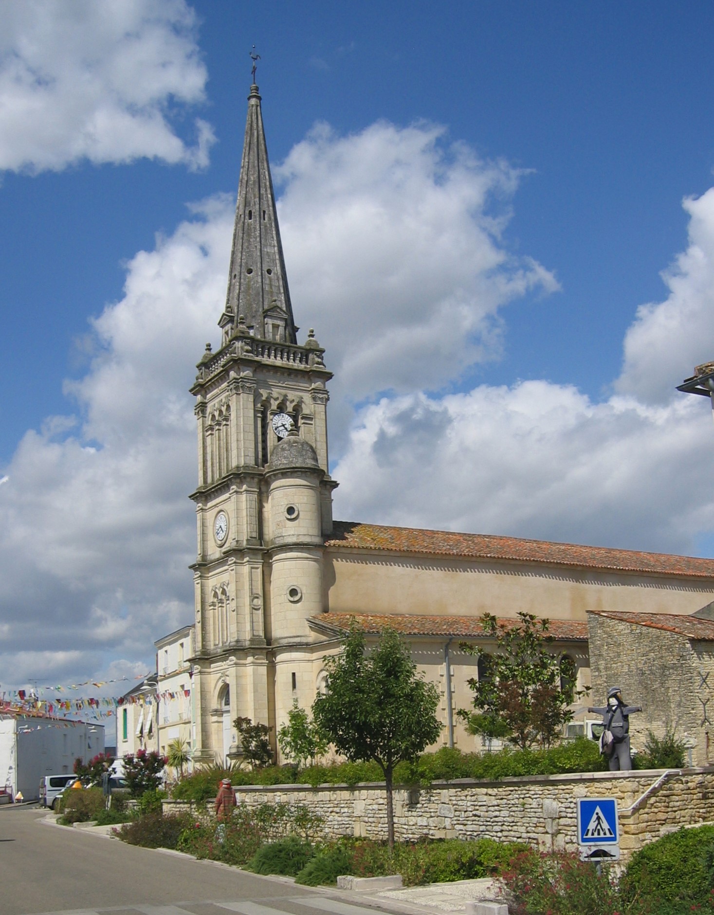 Les travaux commencent en 1848, en conservant pour l’instant le clocher de l’ancienne église. La bénédiction de la nouvelle église est réalisée par l’évêque de Luçon le 19 mai 1851. Elle reste toutefois dans un état provisoire, et sera agrandie vers l’est en 1865. L’ancien clocher est alors démoli et, en 1876-1877, on fait appel au grand architecte vendéen Victor Clair pour édifier un clocher porche contre la façade ouest de l’église.