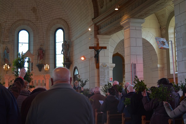 Le dimanche 28 mars, messe de la fête des Rameaux à Saint Sigismond. Jésus entre à Jérusalem acclamé par la foule qui agite des branches de palmier en criant : Hosanna, au fils de David ! C’est le début de la semaine qui mène à sa mort et à sa résurrection.