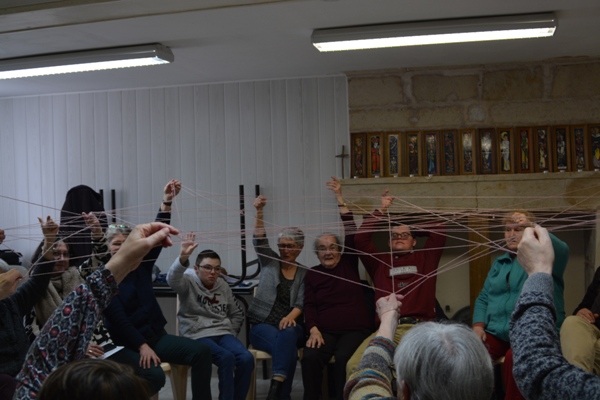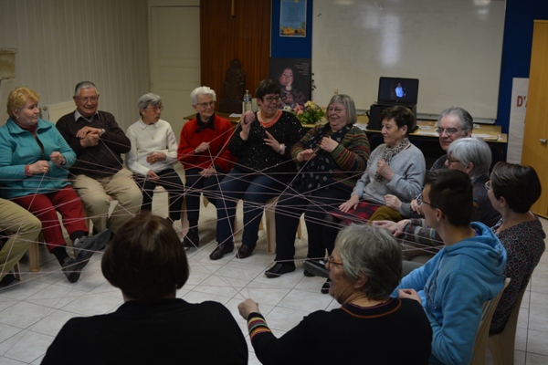 Ensuite, Maryse a présenté le déroulement d’une rencontre préparée avec l’aide du carnet de route du mouvement Foi et Lumière :