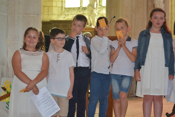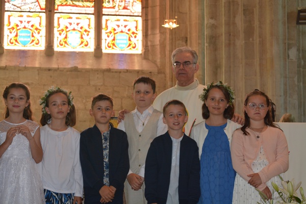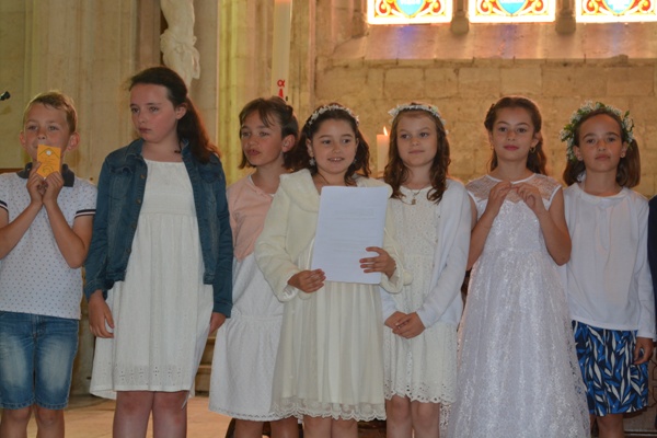 Clémence, Théoden, Paola, Margot, Anaé, Célia, Faustine, Lilian, Line, Marc, Maxime, Nino, Talia, Tim, Quentin et Louna ont communié pour la première fois.